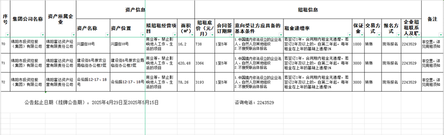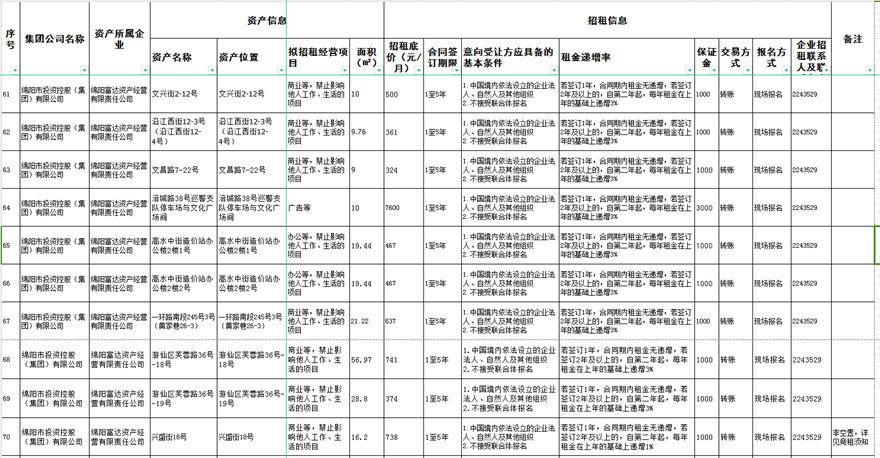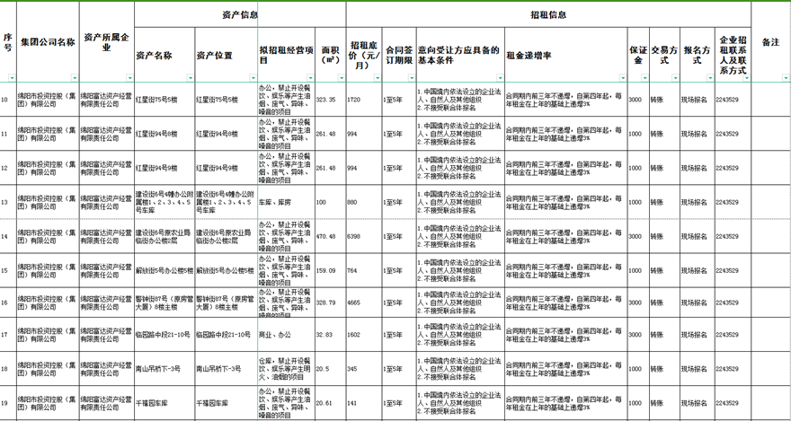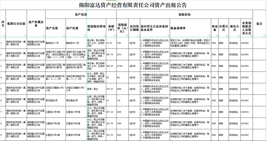 綿陽(yáng)富達(dá)資產(chǎn)經(jīng)營(yíng)有限責(zé)任公司資產(chǎn)出租公告