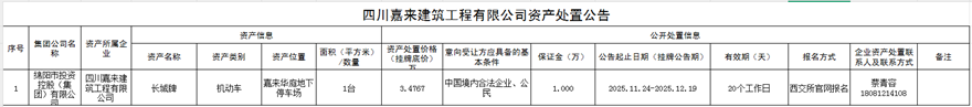 四川嘉來建筑工程有限公司資產(chǎn)處置公告