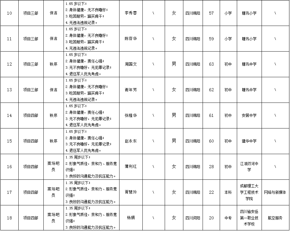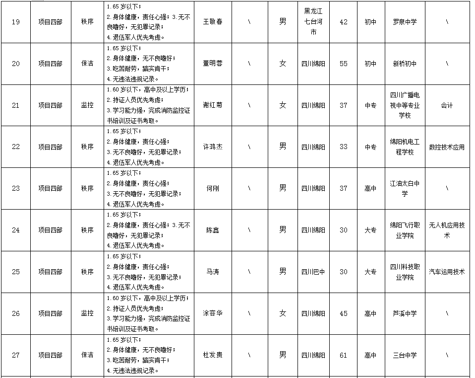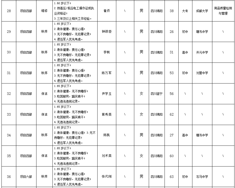 根據(jù)綿陽市康來物業(yè)服務(wù)有限公司發(fā)布的招聘公告及招聘相關(guān)規(guī)定,經(jīng)面試等程序,擬錄用向興容等同志到各項目部工作,現(xiàn)予以公示,具體情況如下:
