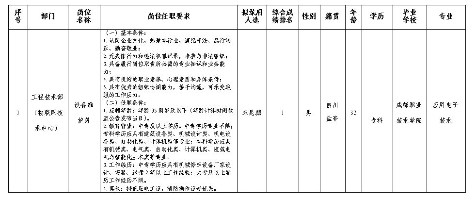 【公開招聘】綿陽市城市停車管理有限公司關(guān)于招聘設(shè)備維護崗擬錄用人員的公示