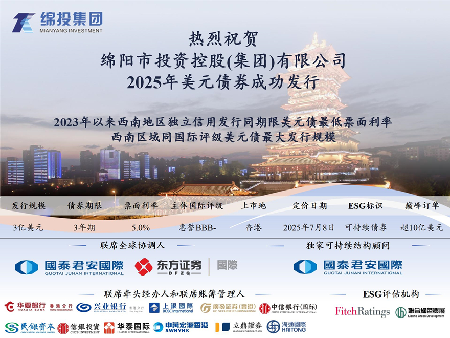綿投集團(tuán)成功發(fā)行2025年境外可持續(xù)美元債
